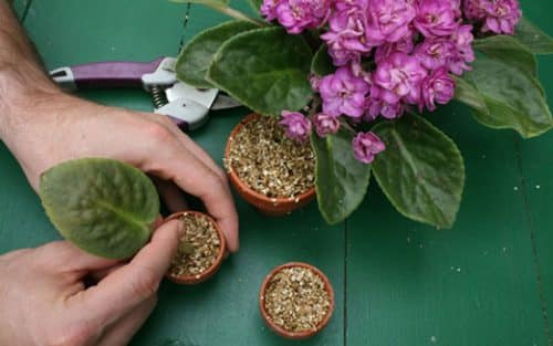 گل بنفشه آفریقایی تمایل زیادی به تکثیر دارد و به همین دلیل روش های زیادی از جمله قلمه زدن برای تکثیر آن وجود دارد. یکی از این راه ها، تکثیر از طریق برگ این گل است. در این روش برگ سالم را از گیاه جدا کرده و دم برگ را در آب قرار میدهیم پس از رشد ریشه ها، امکان کاشت آن فراهم است. متاسفانه تکثیر این گل از طریق کاشت بذر به ندرت انجام میشود.