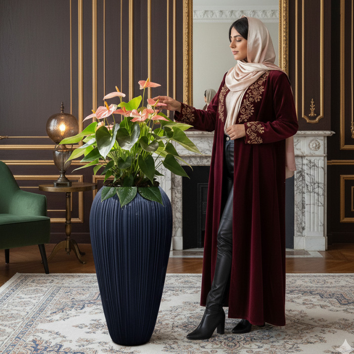 گلدان فایبر گلاس با گیاه آنتوریوم