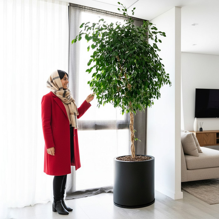 گلدان دکوراتیو بنجامین سبز شماره 15 ( بدون چرخ ) (ارسال سریع امروز)